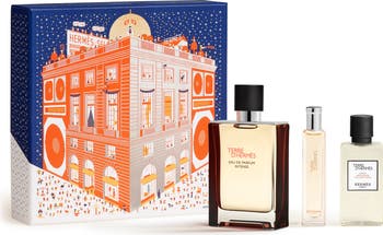 What it is: A three-piece gift set featuring the Terre d'Hermés Eau de Parfum Intense, housed in a beautiful box designed by illustrator, Tibor Kárpáti, inspired by the holiday season.