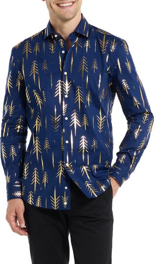 A refined option for any holiday occasion, this tree-marked dress shirt is cut in a comfortable tailored fit and perfect for elevating your festive look.