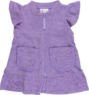 Terry Butterfly Sleeve Full Zip Cover-Up offers an enchanting blend of style and functionality for your little girl's beach or poolside adventures. This delightful cover-up is not just eye-catching but also practical with its full zipper closure, making it easy for quick changes. The unique butterfly sleeves add a whimsical touch, perfect for those sunny day outings. Designed with girls' sun protection in mind, this cover-up features long sleeves that provide UPF 50+ sun protection, keeping her safe from harmful UV rays. The inclusion of a hood offers additional coverage, while the practical pockets are perfect for storing treasures or keeping hands warm. Charming details like a bow and ruffle enhance its girlish charm, ensuring she looks cute while staying protected. Crafted from a plain knit fabric known for its durability, the cover-up is ideal for active girls. It boasts 4-way stretch for unrestricted movement and is designed to resist pilling and snagging, ensuring it stays looking new throughout the season. Whether it's for a day at the beach or a poolside party, this terry cover-up is a must-have in her wardrobe.