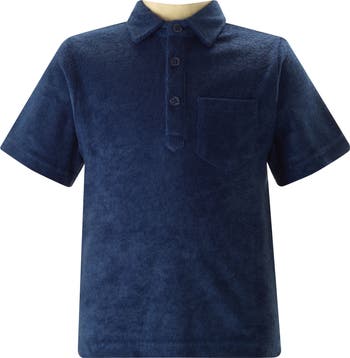 - Made from navy terry towel fabric, this boys' polo shirt features a classic collar and button placket. A must-have for any summer adventure!