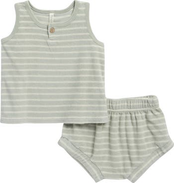 Amp up the warm-weather charm of baby's wardrobe with this comfy terry-cloth set featuring a striped tank top and matching shorts.
