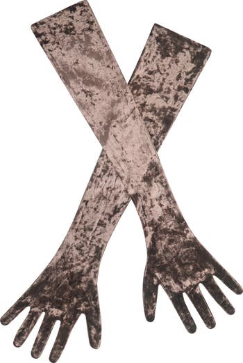 Elevate your ensemble with our Tess Coffee Velvet Opera-Length Gloves, crafted from soft stretch velvet. These gloves gracefully extend to enhance any outfit, offering a touch of refined elegance. Perfect for formal occasions, weddings, or a chic night out, the crushed velvet fabric adds a subtle allure. Embrace timeless sophistication with these gloves, the ideal accessory for making a statement with grace and style. Perfectly matches with our Tessa dress.