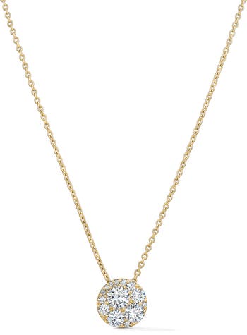A delicate circle of pavé diamonds catch light from every angle in this 18-karat-gold pendant necklace.