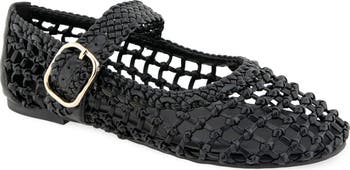 Knotted straps dial up the contemporary charm of a mary jane flat complete with a comfort-cushioned footbed.