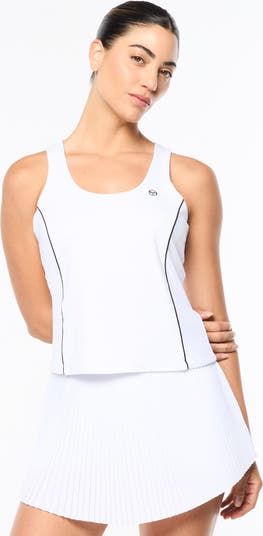 Find your flow with our super-comfy Tessa Scoop Neck Tank, crafted from performance stretch fabric in a racerback silhouette to keep you supported and moving freely through any workout. Featuring contrast piping down the princess seams for a flattering fit, this tank is finished with breathable mesh side panels to keep you cool when practice heats up. Pair with the Tessa Skort for the full fit. (Sold separately)
