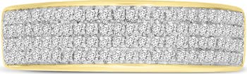 Introducing our elegant Unisex 10K Yellow Gold band ring with 4 rows of brilliant diamonds weighing 0.49 carats available in sizes 8 to 12. With a focus on timeless design this exquisite ring can be both a wedding band or the perfect statement accessory for an exciting evening.