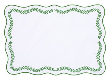 Gauzy white linen framed in embroidered ivy brings easygoing elegance to any table with this set of four placemats designed for distinction with gracefully scalloped edges. Finished with a stain-resistant acrylic coating, they wipe clean after each use and launder easily whenever they're ready for a refresh.