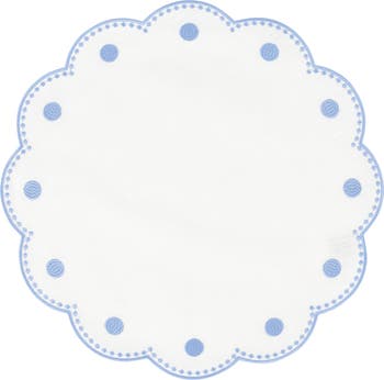 Gauzy white linen framed in embroidered dot motifs brings easygoing elegance to any table with this set of four placemats designed for distinction with gracefully scalloped edges. Finished with a stain-resistant acrylic coating, they wipe clean after each use and launder easily whenever they're ready for a refresh.