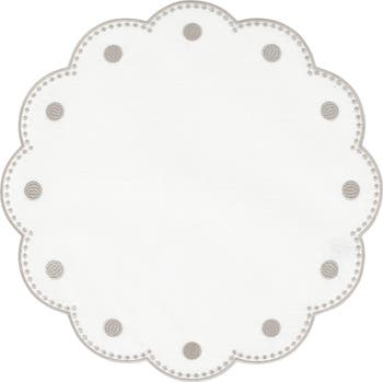 Gauzy white linen framed in embroidered dot motifs brings easygoing elegance to any table with this set of four placemats designed for distinction with gracefully scalloped edges. Finished with a stain-resistant acrylic coating, they wipe clean after each use and launder easily whenever they're ready for a refresh.