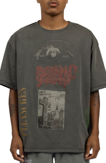 An oversized silhouette defines this graphic T-shirt with a bold print all over.