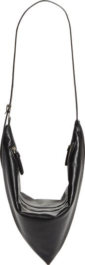 Make a pointed, modern statement with this lambskin-leather shoulder bag designed in a draped silhouette with dual interior compartments.