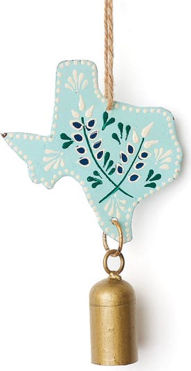 - This indoor outdoor wind chime, hanging art is hand painted in light blue with an intricate bluebonnet design and has a jute hanger. Hang indoors or on an outdoor patio for patriotic flair and a soothing sound. Bundle with other Texas items from our State Collection.