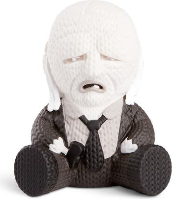 Approximately 5 inches tall and perfect for display or play Our friendly robots designed this figure to look like knit fabric at a glance, but it’s actually made of vinyl Signature vinyl tag on the figure, complete with barcode decal to resemble a sewn-in tag Grandpa Sawyer never looked so unique!