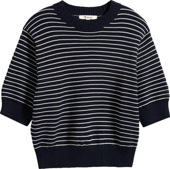 Coming in 100% cotton, this striped crewneck sweater features voluminous short sleeves and a unique textured stitch. It's perfect for pairing with low-rise, baggy jeans for an effortlessly cool look.