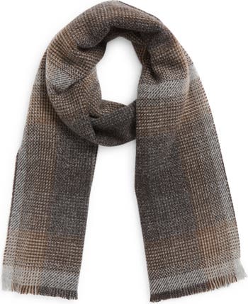 A textured cashmere scarf in a classic plaid pattern adds the perfect polished finish to your cold-weather look.