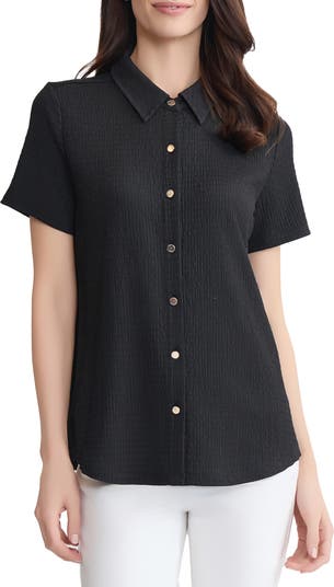 Polished buttons play against the textured backdrop of this shirt that gives your look a bit of polish with plenty of comfort.