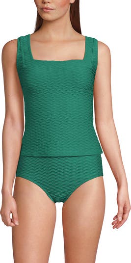 This square neck tankini top is a great anchor for your swim wardrobe. Its styling is simple, yet universally flattering. Women of all shapes and sizes sing its praises. The woven Jacquard fabric feels great on your skin and smooths your curves, plus it's chlorine resistant which means it'll keep its shape swash after wash.