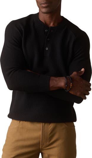 Knit from cotton-blend yarns that help wick moisture and enhance breathability, this textured henley sweater brings stealth performance to your casual everyday look.