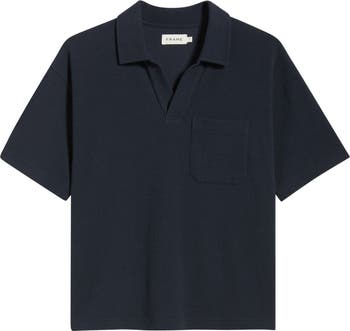 A soft cotton blend makes an elevated favorite of a polo knit with subtle ribbing and topped with an open collar to emphasize its casual feel.