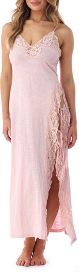 Lilts of lace trace the edges of a cool cotton nightgown eased with a side slit.