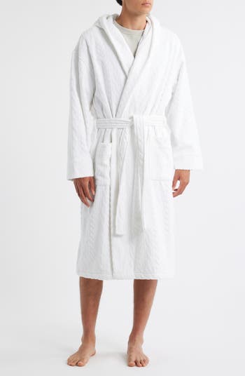 Textured Cotton Terry Cloth Hooded Robe