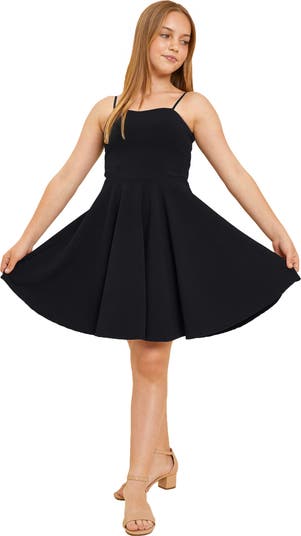 Your child will adore this all over stretch fit-and-flare silhouette, perfect for any event. Dress it down simple, or jazz it up with a fun Un Deux Trois belt.