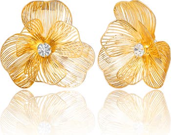 Sculpted, textured petals and a sparkly crystal center bring modern shine to these easy, everyday flower studs—an effortless upgrade to any outfit.