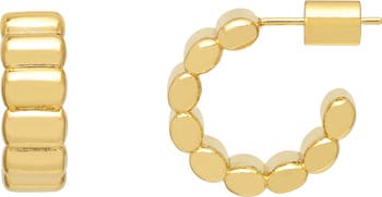A segmented silhouette adds delightful texture to these playfully small hoops that glisten in a high polish.