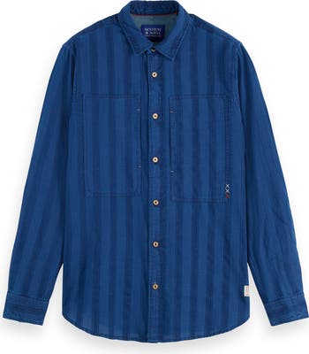 A little indigo goes a long way—this cotton button-up makes a statement with textured stripes and rich, true-blue color that gets better with every wear.