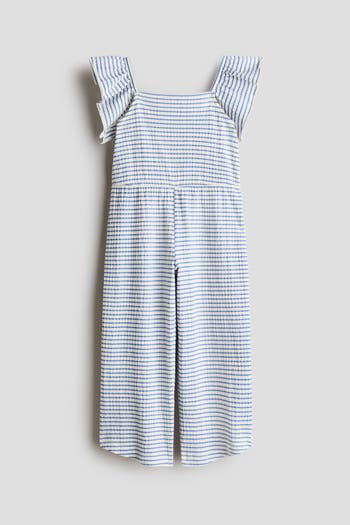 Jumpsuit in textured jersey with flutter sleeves, a square neckline and buttons at the back.