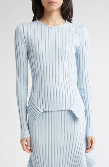 McCartney puts a sculptural twist on knitwear in this soft yet structured Italian-cotton sweater with winged panels arranged in an asymmetric waistline.