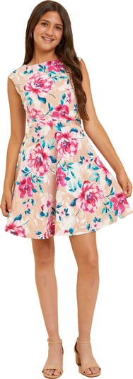 Brushed texture enhances the understated sophistication of this picture-perfect cap-sleeve dress.