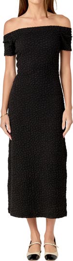 Textured Off the Shoulder Midi Dress