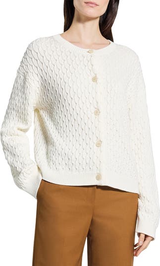 Richly textured stitching elevates this organic-cotton cardigan, bringing cozy refinement to cooler days.