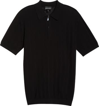 This polo is knit from soft cotton with a textured-stripe finish that gives quiet dimension up close.