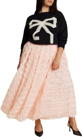 - This textured tulle maxi skirt is a lesson in ethereal volume & runway-coded sway. Fully lined with a back zipper & elastic back waist, it floats at the ankle for statement-making movement.