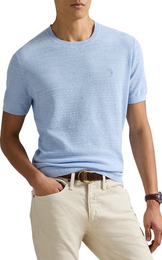 Iconic since its '71 debut, an embroidered polo rider hints at the preppy heritage of this trim seed-stitched sweater in a lightweight, breathable cotton-linen blend.