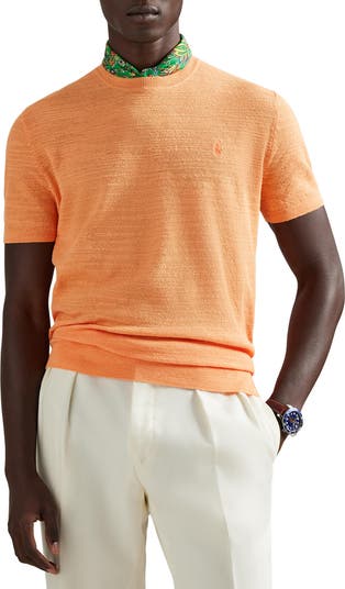 Iconic since its '71 debut, an embroidered polo rider hints at the preppy heritage of trim seed-stitched sweater in a lightweight, breathable cotton-linen blend.