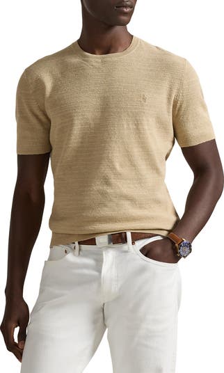 Iconic since its '71 debut, an embroidered polo rider hints at the preppy heritage of this trim seed-stitched sweater in a lightweight, breathable cotton-linen blend.