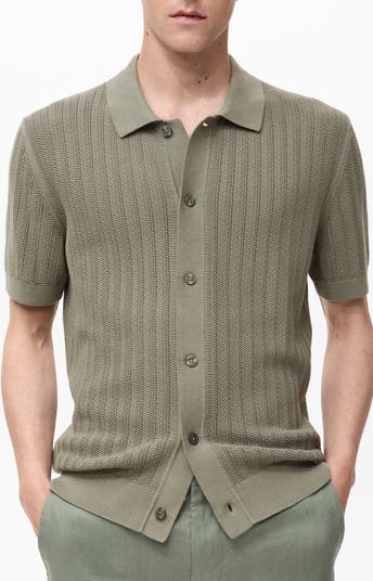 Textured knitting creates a retro chevron pattern on this nicely draped, polo-inspired shirt cut for a regular fit.