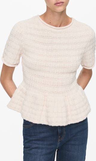 Subtle gathering at the waist creates the classic peplum silhouette of this refined and modern short-sleeve sweater.