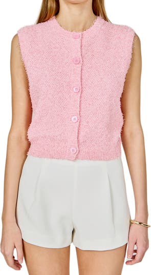 Soft texture enhances the look and feel of this close-fitting sweater-vest knit in a cropped silhouette.