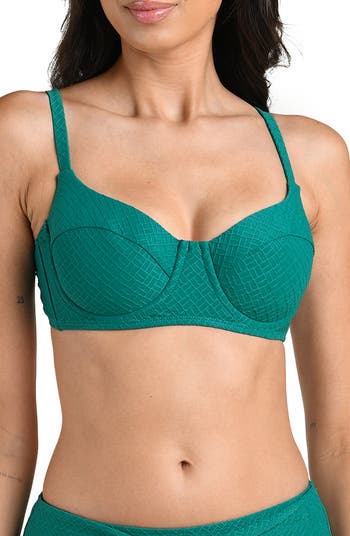 A textured jacquard design brings depth and dimension to this underwire swim top framed with adjustable straps for the perfect fit.