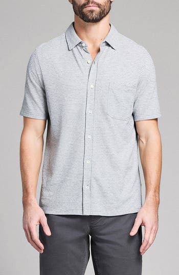 Finely textured stripes bring subtle depth and dimension to your look when you build it around the soft cotton-blend knit of this short-sleeve shirt that looks great worn casually untucked.
