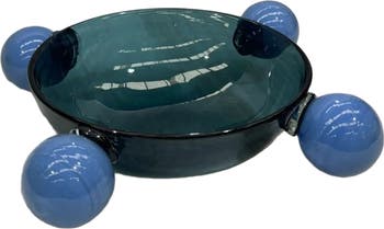 Fruit or Serve Bowl from the series lagunas. Blue and smoke colors. Recycled glass blown in Guadalajara Mexico.