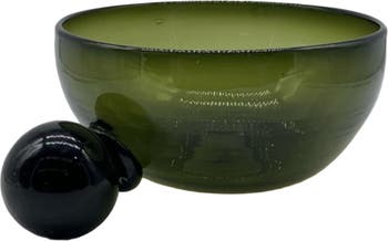 The Tezon bowl is made using recycled glass by artisans in Guadalajara Mexico. Forest Green Colors.