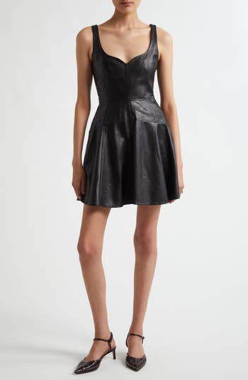 Be party perfect in this fit-and-flare dress cut in a leggy length and elevated in rich leather.