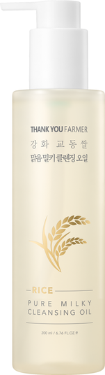 THANKYOU FARMER Rice Pure Milky Cleansing Oil 6.76 Fl oz (200ml) - Korean Cleansing Oil For Face, Non Comedogenic, Blackhead Pore Sebum Cleanser