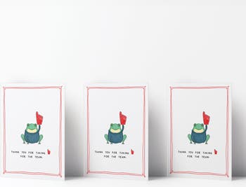 This 3-pack of Thank You greeting cards is elegantly illustrated by artist Ingrid Ramus, founder and owner of the Ramus & Co brand. The cards are blank inside. All greeting cards are made in the USA on heavyweight uncoated and locally-manufactured card stock. Each card is individually wrapped in TUV Austria certified-compostable PLA sleeves that meet both ASTM D6400 & EN 13432 standards. Each card is accompanied by a hand-embossed envelope made with heavyweight 95lb paper and a peel-and-stick flap - no licking envelopes here! All Ramus & Co. greeting cards are printed on FSC© and SFI© certified paper sourced from a regional mill that harnesses 66% of its energy from on-site sustainable sources, such as emission-free hydroelectricity and biomass co-generation from wood waste. Additionally, our greeting cards are thoughtfully packaged in bags made from certified compostable PLA material. Husband-and-wife team Calvin and Ingrid Ramus founded Ramus & Company in 2019, in New England, USA. Ingrid, the creative designer behind the brand, originates from Mexico, where she cultivated her skills in fashion and textile design. Drawing from her unique and inquisitive perspective on preppy style, Ingrid prolifically designs whimsical yet classic stationery and lifestyle items.