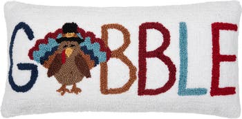 Thanksgiving "Gobble" Turkey Accent Hooked Throw Pillow, 12" x 24"